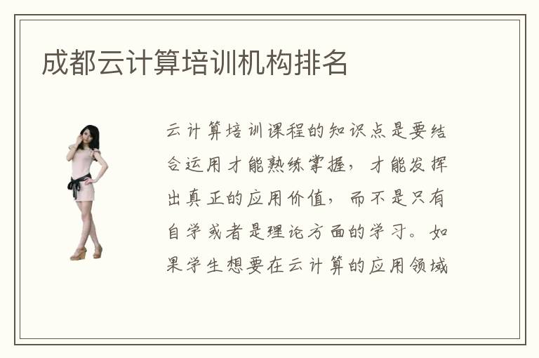 云计算培训课程的知识点是要结合运用才能熟练掌握,才能发挥出真正的应用价值,而不是只有自学或者是理论方面的学习。如果学生想要在云计算的应用领域上得到更好的发展机遇,那么可以先找到成都云计算培训云计算培训机构排名,了解排名靠前的专业机构,因为排名靠前,说明云计算培训机构能力比较强,不仅仅只是知识的方法培训,而且带来很多思维创造性方面的培训。大家可以多关心这些机构,提升应用的价值和优势,改善云计算培训的学习功效。云计算培训机构实践课程比较紧接时代的潮流,而且有一些课程都是能够和国际接轨的,如果学生在平常缺乏实践和学习的机会,那么考虑云计算培训机构也许是更好的方法。有些专业的辅导机构能提高未来的发展实践,提供很多个性化的教学以及小组的教学。