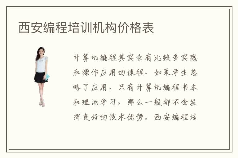 计算机编程其实会有比较多实践和操作应用的课程,如果学生忽略了应用,只有计算机编程书本和理论学习,那么一般都不会发挥良好的技术优势。西安编程培训机构价格表主要看编程培训机构时间以及专业的计算机编程培训方式,有些课程能够有比较明显的提高,因此培训时间会延长,这个时候的收费价格也会上升。编程培训机构找工作容易吗,计算机编程的课程内容通常不难,但是也需要足够的时间去吸收和把握,有些课程属于实践类的内容,所以大家要多多关心各种实践的思维和方法。但有些学生在学习云计算和计算机编程知识时,就是为了找比较轻松的工作,其实计算机软件编程培训机构会帮助大家制定很多简单的课程内容,而且这些课程内容会针对企业的工作岗位要求,让学生可以拥有更强的工作技能优势。