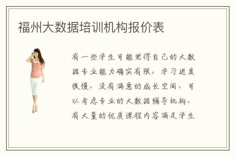 有一些学生可能觉得自己的大数据专业能力确实有限,学习进度很慢,没有满意的成长空间,可以考虑专业的大数据辅导机构,有大量的优质课程内容满足学生的应用和调整,也能学习更多高效的技术,未来凸显出自己惊人的成绩。福州大数据培训大数据培训机构报价表可能在2600到8000元,但是课程内容以及教育的水准等等不同,因此课程的费用应该是有变化的,如果选择很高端的培训机构,那么大数据培训机构找工作优势会有非常好的保障。但也不排除某些学生为了节约报名成本,选择低端的大数据专业机构,那么可能找工作会有很大麻烦。大数据培训效率如何,有很多学生都希望提高大数据专业的学习效率,改善应用大数据的成绩,但是并不是每个机构都有不错的水平,所以要尽可能考虑这些因素。