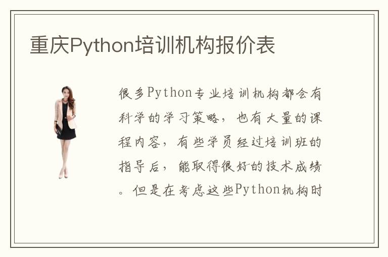 很多Python专业培训机构都会有科学的学习策略,也有大量的课程内容,有些学员经过培训班的指导后,能取得很好的技术成绩。但是在考虑这些Python机构时,要看一下重庆Python培训机构报价表,毕竟有部分课程内容比较贵,可能学生会有一定的难度。Python培训机构挑选技巧主要是看几个参考因素,包括Python培训机构教学课程以及具体的培训方法、就业保障等等。因为有很多辅导机构都可以提供不同的培训方法,但是其中有一个不会变的,就是要重视实践应用和理论结合的能力培养。要是学生只有理论的学习,或者是只有实践的应用,根本就没有办法完善Python课程的应用价值。比如在应用方面,没有足够的知识理论作为支撑,那么以后在应用比较高端知识时,就没有办法完整的应用出来。