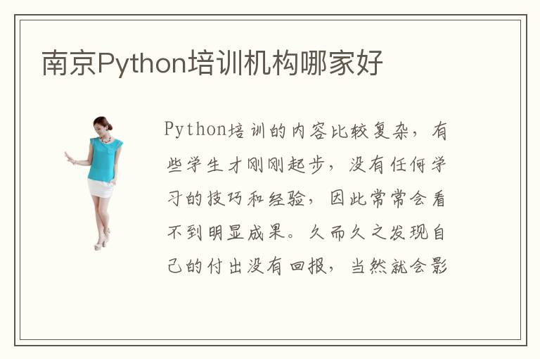 Python培训的内容比较复杂,有些学生才刚刚起步,没有任何学习的技巧和经验,因此常常会看不到明显成果。久而久之发现自己的付出没有回报,当然就会影响学习成绩,但是有很多学习的技巧和方法可以改善这些情况,大家可以先对比清楚南京Python培训机构哪家好,了解不同培训机构的教育水平和方案、教学模式等等,改善自己的Python学习成果和效率。Python培训机构小组教学大多数都是有专业的管理基础,而且也能通过临摹或者是分析、操作和创作等多个角度的学习,尽快了解Python培训的专业课程。Python培训机构有什么课程,一般情况下会提供就业辅导课,也可以帮助学生去分析各种知识的结果,丰富学习乐趣,对Python专业知识有更加浓厚的兴趣,以后学习动力也会大大升高。