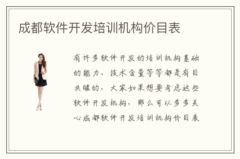 有许多软件开发的培训机构基础的能力、技术含量等等都是有目共睹的,大家如果想要考虑这些软件开发机构,那么可以多多关心成都软件开发培训机构价目表选择合适的价位软件开发培训机构挑选方式,同时又能保证软件开发机构的技术优势和学习技能。软件开发培训机构学习成果是学生都会特别关注的,因为很多学生担心经过软件开发培训机构的学习之后一点作用都没有,那么往往会耽误学习进度,也会导致自信心受挫,那么可以多对比各种软件开发培训机构的应用成绩、教学成果以及多种学习的内容。有些机构确实是有非常好的技术优势,可以保障学习的成果,而且也能满足学生日常生活和时间的安排,并不会和工作和主要的学习相冲突,让学生学习的时候更加没有后顾之忧。