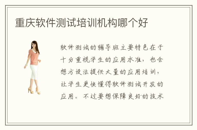 软件测试的辅导班主要特色在于十分重视学生的应用水准,也会想方设法提供大量的应用培训,让学生更快懂得软件测试开发的应用。不过要想保障良好的技术成绩,要多分析重庆软件测试培训机构哪个好,毕竟不是每一个软件测试辅导机构都能够看到好的效果。有些机构能力不足,经验不够,影响学生的进度。软件测试培训老师厉害吗,目前的软件辅导机构其实也有很强劲的培训能力和优势,主要就是老师的水平很高,在师资力量方面一直都在不断突破,聘请更多行业内高端的技术人员,而且也在软件测试教育上有很多丰富经验,因此可以确定软件测试培训职业发展,让学生更了解未来的发展模式和方向,以后学习软件测试的过程会更有方向。另外也会透过上台演讲,或是分组讨论等多种模式,改善学生的技术能力和成绩。