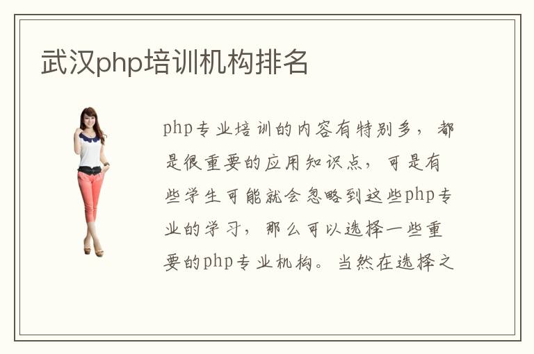 php专业培训的内容有特别多,都是很重要的应用知识点,可是有些学生可能就会忽略到这些php专业的学习,那么可以选择一些重要的php专业机构。当然在选择之前可以先了解武汉php培训php培训机构排名以及php培训机构气氛好不好等等相关的内容,然后再作出决定。如果气氛不错、而且课程也比较完善、排名靠前,那么这些机构也应该更加值得大家去考虑。php培训机构培训方案当然会结合学生的基础来进行培训,如果学生没有根据自己的能力来调整课程,总是学习高难度的知识,但是超越自己承受的能力范围,那么可能会影响学习进度,有时候会耽误学习的效率,引起多种负面的学习情绪。所以在考虑培训课程之前,应该要了解自己的专业缺陷以及需要弥补的领域,然后再选择恰当的php课程内容。