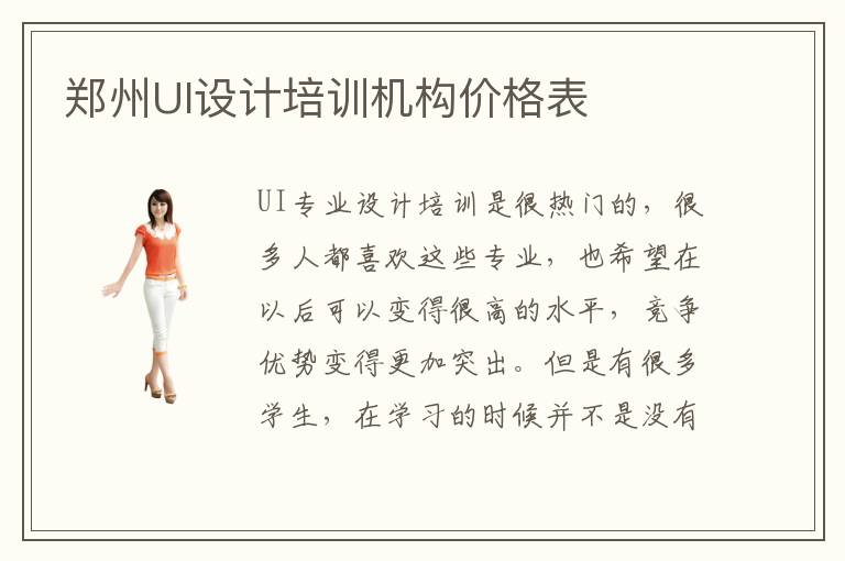 UI专业设计培训是很热门的,很多人都喜欢这些专业,也希望在以后可以变得很高的水平,竞争优势变得更加突出。但是有很多学生,在学习的时候并不是没有时间,又或者是不够努力,而是没有找对学习方法。这个时候可以调整学习的方向,选择UI设计培训机构来帮助自己提高学习的效率和成绩。郑州UI设计培训机构价格表通常是不太确定的,有几个参考指标,包括学习方法、学习时间、学习课程难度等等。UI设计培训机构速度如何,其实大多数计算机培训专业速度还是比较快的,主要是老师有丰富经验,带来很多具有目的性的培训内容,让学生可以尽快适应先进的技术,又可以更有针对性掌握各项内容。UI设计培训难度大不大,其实每一种课程的难度都有高有低,有一些课程可能会比较高端,那难度自然就会上升,但是只要掌握之后,优势就会更明显。