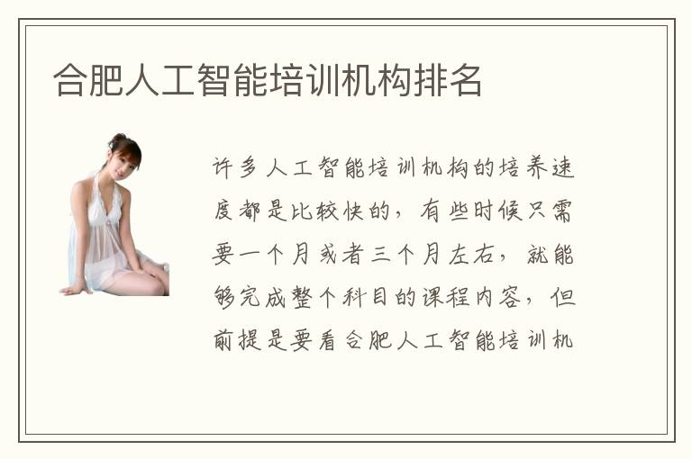 许多人工智能培训机构的培养速度都是比较快的,有些时候只需要一个月或者三个月左右,就能够完成整个科目的课程内容,但前提是要看合肥人工智能培训机构排名,如果排名靠后、基础能力不扎实的课程内容不全面,那么就算培训的速度太快,也会漏掉很多重要的人工智能相关知识。所以大家除了要考虑清楚各种机构的学习速度,也要了解人工智能培训的具体教学质量和成果。人工智能培训机构挑选技巧主要看个人的专业技能以及课程内容等等,比如人工智能培训教学的课程通常会结合各种应用的课程、个性化的教学课程来进行培训,因此人工智能培训的质量会有明显的上升。当然效果跟个人有关系,比如有些人工智能培训的学员平常不太努力,基础也不够扎实,那么要花更长时间才能够看到课程培训的效果。