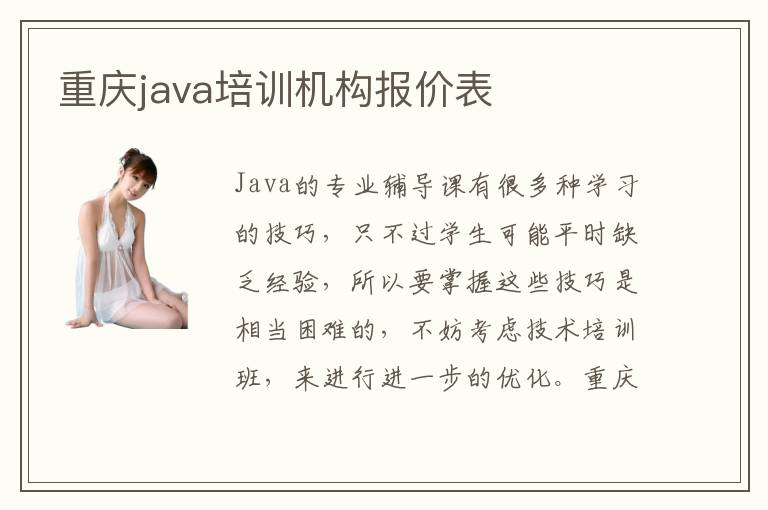 Java的专业辅导课有很多种学习的技巧,只不过学生可能平时缺乏经验,所以要掌握这些技巧是相当困难的,不妨考虑技术培训班,来进行进一步的优化。重庆java培训机构报价表大概在3000~8000,但课程其实不同,所以费用也有波动。java培训机构优势大不大,Java培训机构的优势其实也比较明显,比如java培训机构应用课程比例会比其他学校更高,也有全面的管理方式,通过严格管理的方法,让学生对Java的专业学习过程更加认真。适当为学生制定学习的任务,让学生对Java的重要知识有更全面的掌握。有些学生才刚刚接触Java专业,所以并不是很了解这些专业的应用领域,也不了解哪些课程是更加重要的。但是透过Java的专业辅导之后,这些应用的课程会更科学和全面,往往课程难度设计也相当合理,为不同学员带来个性化的Java专业辅导。