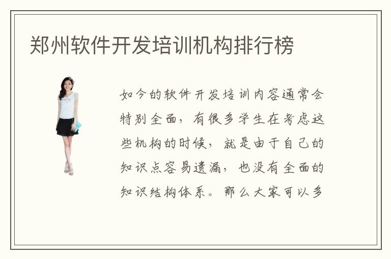 如今的软件开发培训内容通常会特别全面,有很多学生在考虑这些机构的时候,就是由于自己的知识点容易遗漏,也没有全面的知识结构体系。那么大家可以多了解郑州软件开发培训机构排行榜,掌握一些排名靠前、资历更强的软件开发机构类型,得到更好的专业应用提升机会。软件开发培训机构要求一般都是比较高的,提供多样的学习技巧和方法,学生可以尽快适应这些课程。但是有许多专业培训方法和培训机构都没有很好的技术效果,学生掌握这些专业技能的过程中,应该要了解各种应用的思维和知识的积累。有些学生可能真的很长时间都发挥不出学习的成果,那么就不能埋头苦干,还是要转换一下有用的方式。软件开发培训机构远程培训可以节省时间,时间灵活掌握,学生不用有太多学习时间方面的压力。