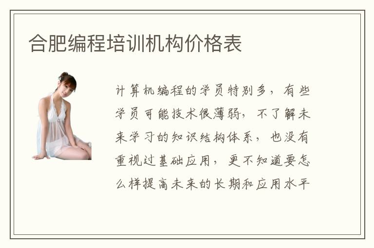 计算机编程的学员特别多,有些学员可能技术很薄弱,不了解未来学习的知识结构体系,也没有重视过基础应用,更不知道要怎么样提高未来的长期和应用水平。大家要重视自己的学习情况,了解计算机编程专业缺陷,选择恰当的编程辅导班,得到更强劲的发展空间以及技术优势成果。合肥编程培训机构价格表5000到3万元是很正常的范围,但是也要看不同的学习机构以及培训口碑、教育质量等等。编程培训机构口碑如何,有部分机构确实有很好的技术含量,技术口碑也不错,可以达到很好的培训质量和效果。编程培训机构好吗,其实大多数培训机构还是为学生制定全面课程,有不错的应用管理能力,提供很多复杂的学习技巧方法,让学生更快找到理想的技术应用价值和优势。