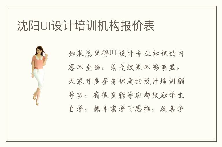 如果总觉得UI设计专业知识的内容不全面,或是效果不够明显,大家可多参考优质的设计培训辅导班,有很多辅导班都鼓励学生自学,能丰富学习思维,改善学习的速度和学习的方法。沈阳UI设计培训机构报价表有些可能会在3000~8000,还有部分机构可能只需要2000~4000即可,主要看教学的水平和具体口碑。UI设计培训机构气氛如何,可能有些辅导机构会很关注学校氛围的培养,只是希望时常可以在一些浓厚的学习氛围中掌握知识,让学习过程才更加轻松,也会通过外力的鼓励,让自己对一些高难度的知识有更加强烈的解决欲望。UI设计培训机构速度快吗,有些辅导班可以提供快速学习方案,制定科学的全面的辅导内容,而且对于不同的学生,会制定不同学习方法,更加深入了解UI设计专业的课程知识。