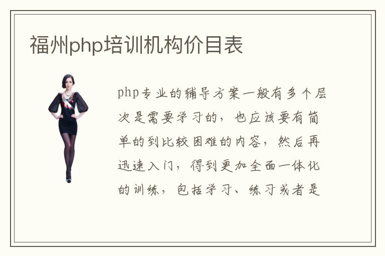 php专业的辅导方案一般有多个层次是需要学习的,也应该要有简单的到比较困难的内容,然后再迅速入门,得到更加全面一体化的训练,包括学习、练习或者是测评等等。福州php培训php培训机构价目表,大概区间范围是在2500元到20000,当然这些课程都不一样,因此并不能够保证每个机构都有统一的学费标准,大家要多对比php培训机构培训能力,了解不同机构的业务能力以及php专业的水准、技术知识和水平等等。php培训机构容易找工作吗,当然也会有很好的工作优势,不需要太过于担心工作的时候出现明显的障碍。很多php学习机构都能保障以后的专业发展优势,在php专业学习的过程中,也会有很好的就业前景,但是并不是所有学生都能花时间去学习,所以学生自己也要多花一点时间在这些领域的学习。