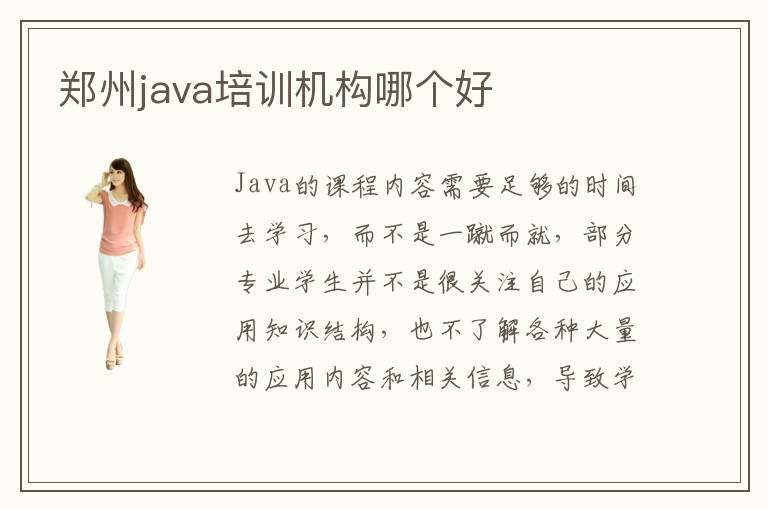 Java的课程内容需要足够的时间去学习,而不是一蹴而就,部分专业学生并不是很关注自己的应用知识结构,也不了解各种大量的应用内容和相关信息,导致学习的成果会受干扰。大家可以重点了解郑州java培训机构哪个好以及java培训机构要很久吗,选择优质的辅导班,提高java培训机构水平,保障java就业竞争能力和优势。目前Java学习方向比较多,所以学生在考虑学习内容时,针对自己的缺陷以及需要弥补的地方来进行分析。如果学习的质量不太高,还可选择高端的培训机构,改善学生应用的成绩和实力。不过有部分学校的应用技能还是比较高端的,所以大家在考虑这些学校时,要了解比较前沿的科技内容,这样在学习的时候,才可以发挥出当下的价值,在企业工作的时候,可以提高竞争优势。