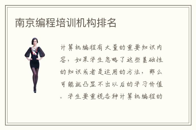 计算机编程有大量的重要知识内容,如果学生忽略了这些基础性的知识或者是运用的方法,那么可能就凸显不出以后的学习价值。学生要重视各种计算机编程的重要知识点,而且要了解各种计算机编程学习技巧,掌握重要的学习规律,那么以后在掌握计算机编程或者是其他相关知识时,也许就会有更多学习方法。南京编程培训机构排名凸显出综合实力以及专业管理水平,假如专业机构的排名靠前,那么说明专业管理应该是比较优越的,也能体现出综合的实力和水准。有些学生会比较担心编程培训机构技术难度太高,自己没有掌握编程培训机构学习技巧,当然就会有很大的困难。其实很多计算机培训机构会帮助大家改善计算机编程的各种技巧,让学生可以懂得更高端的知识内容,也能掌握编程学习思维和技巧。