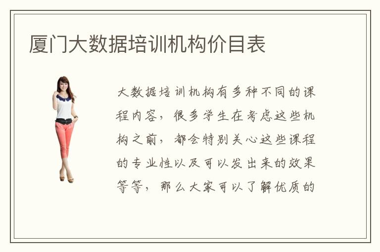 大数据培训机构有多种不同的课程内容,很多学生在考虑这些机构之前,都会特别关心这些课程的专业性以及可以发出来的效果等等,那么大家可以了解优质的大数据专业机构,掌握厦门大数据培训机构价目表,掌握,再针对自己的大数据专业需求来考虑机构。大数据培训机构知识结构通常会更加全面,大数据培训机构教学经验也是相当丰富,能为各种学员带来专业性的知识学习方案和应用方案。但是有部分大数据专业培训机构并没有很好的技术经验,老师的水平确实很不同,导致学生在掌握这些大数据应用知识时,都不是特别顺利。所以大家要重视这些大数据专业辅导机构教育能力以及师资力量等等。另外不管师资力量如何,自己也要找到明确的学习方向,这样学习过程才更有针对性,效率也会上升。
