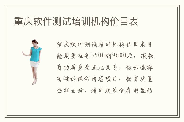 重庆软件测试培训机构价目表可能是要准备3500到9600元,跟教育的质量是正比关系,假如选择高端的课程内容项目,教育质量也相当好,培训效果会有明显的改变,这个时候报名学费会有明显的变化。软件测试培训专业成绩是同学都比较关心的,因为比较多软件测试培训创新内容,并不一定能够让学生得到满意的学习效率,有时候创新内容比较偏冷,那学习掌握之后以后也很难应用起来。所以学校在提供专业辅导知识的过程中,首先自己要去确认一下到底哪些更加符合自己的要求。另外由于辅导班会提供小组教学的方式,因此学生可能有时候会不太适应,因为习惯了传统学校的大班教育课程,因此专业成绩也在短时间内都发挥不出来,所以要有足够的时间逐渐去适应这些软件测试课程。