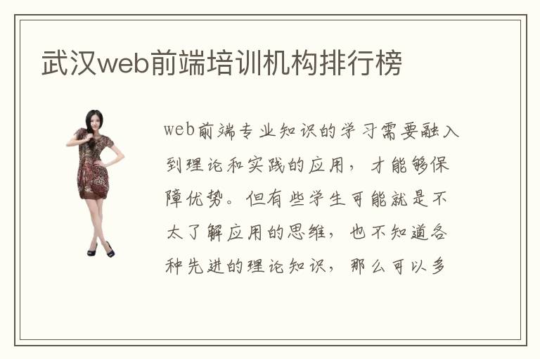 web前端专业知识的学习需要融入到理论和实践的应用,才能够保障优势。但有些学生可能就是不太了解应用的思维,也不知道各种先进的理论知识,那么可以多了解武汉web前端培训web前端培训机构排行榜,找到排名靠前的web前端辅导机构,提高web前端培训机构质量,也许会有很好的技术提升保障,也能减少各种学习的障碍问题,让自己的web专业学习更有成果。web前端培训机构有没有必要,有部分web前端专业的学生发现这些技能比较难懂,但是又没有其他学习的途径和方法,因此不得不选择培训机构。但是又比较担心这些培训机构的技术优势不明显,短时间内可能看到一点效果,但是长时间这些效果就会慢慢消失。其实这些机构的作用还是非常大的,比如可以提高学生专业能力、基础技术水平,还能掌握更多内容。