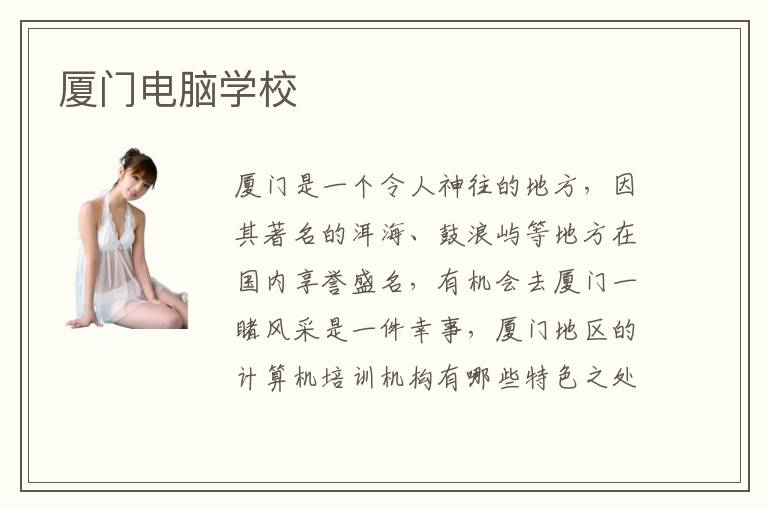 厦门是一个令人神往的地方,因其著名的洱海、鼓浪屿等地方在国内享誉盛名,有机会去厦门一睹风采是一件幸事,厦门地区的计算机培训机构有哪些特色之处?厦门电脑学校是满怀着人文情怀和专业训练的培训基地,我们一定能在学习的时候乐在其中。厦门计算机培训计算机培训中心贵不贵?厦门计算机训练平台培训效率高,学生们能够在这样的舞台上把长处发挥得淋漓尽致。