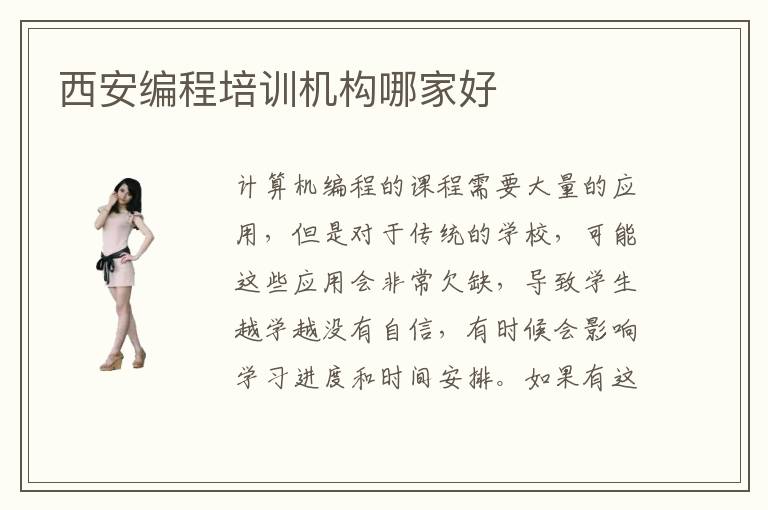 计算机编程的课程需要大量的应用,但是对于传统的学校,可能这些应用会非常欠缺,导致学生越学越没有自信,有时候会影响学习进度和时间安排。如果有这些问题,可以选择辅导机构,了解西安编程培训机构哪家好,掌握每一个辅导机构的技术能力和擅长之处,根据自己的计算机编程专业需要来考虑课程。虽然在考虑计算机编程培训辅导班时,要重视编程培训机构就业优势以及编程培训机构效果,因为很多学生在平常就是没有太多技术培训,就业的技能不明显,以后找工作就会相当困难,优势也体现不出来。另外有很多计算机编程机构可能就是鱼龙混杂,质量参差不齐,如果找到效果不太好的培训班,那么学生的学习进步会大大受到干扰,以后的计算机编程学习进度就会有明显的障碍。