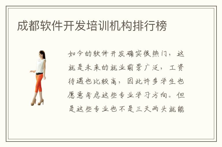 如今的软件开发确实很热门,这就是未来的就业前景广泛,工资待遇也比较高,因此许多学生也愿意考虑这些专业学习方向。但是这些专业也不是三天两头就能够掌握的,需要大量的实践和应用。那大家可以先了解成都软件开发培训机构排行榜,提高自己的学习技能的应用优势,以后也可以改善自己的能力。当然前提是要关注软件开发培训机构技术水平,如果技术水平不够高,那么学生的竞争优势就不是很明显。软件开发培训机构压力一般情况下都会有一点点,但是这些还是在可控的范围,因为如果没有任何压力的情况下,那么人们的学习心态可能会变得特别懒散,而且也没有太大的动力。但是如果有适当的压力作为调节,那么学生往往就会给自己更多动力去学习,因此在软件开发学习的进度方面会有很大的改善。
